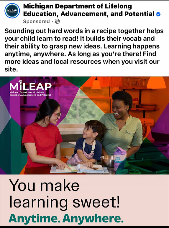 State of Michigan Lifelong Education, Advancement, and Potential Ad on their Facebook Page.